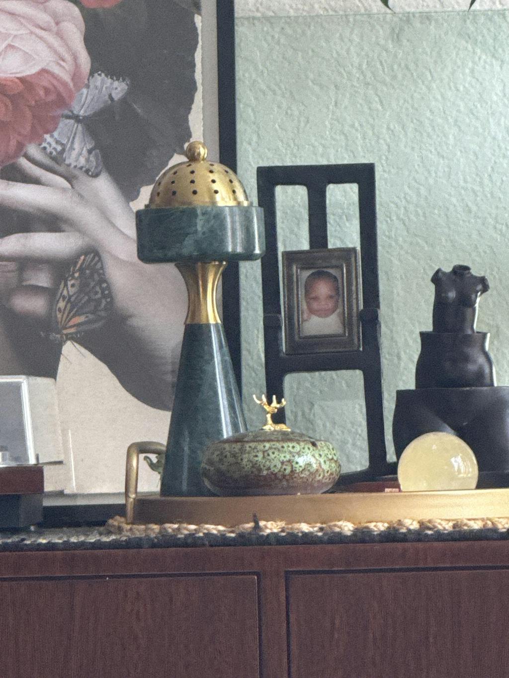 Elevate your home with the timeless elegance of our Green Marble & Brass Bukhour Burner. Handcrafted with a striking natural green marble base and finished with a brushed brass top, this piece blends traditional Middle Eastern ritual with modern luxury design.